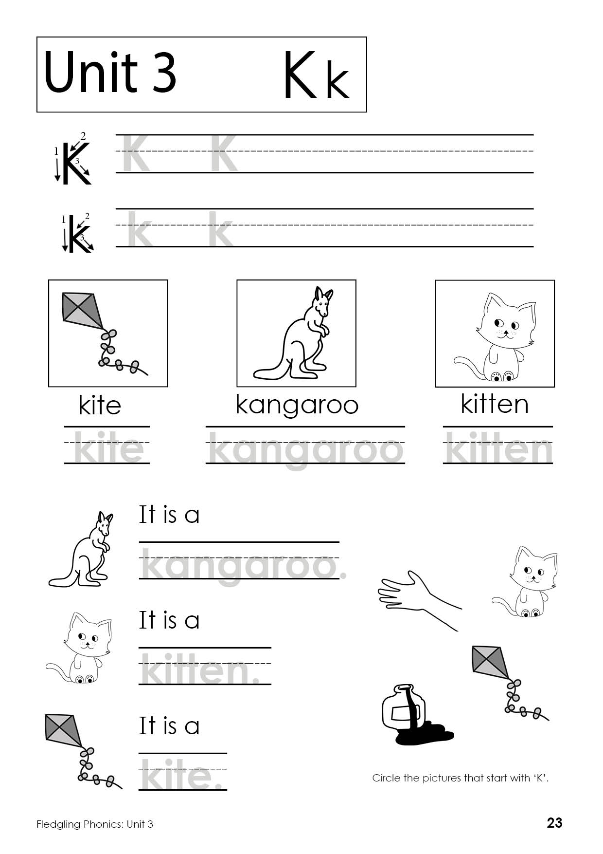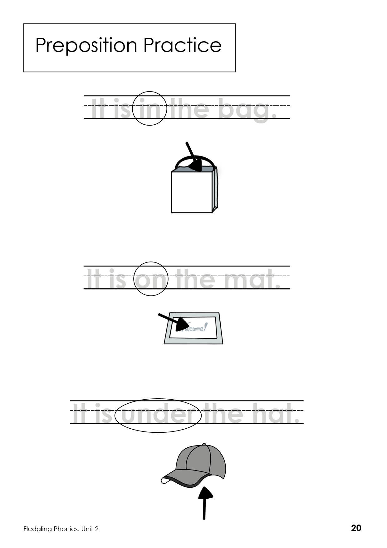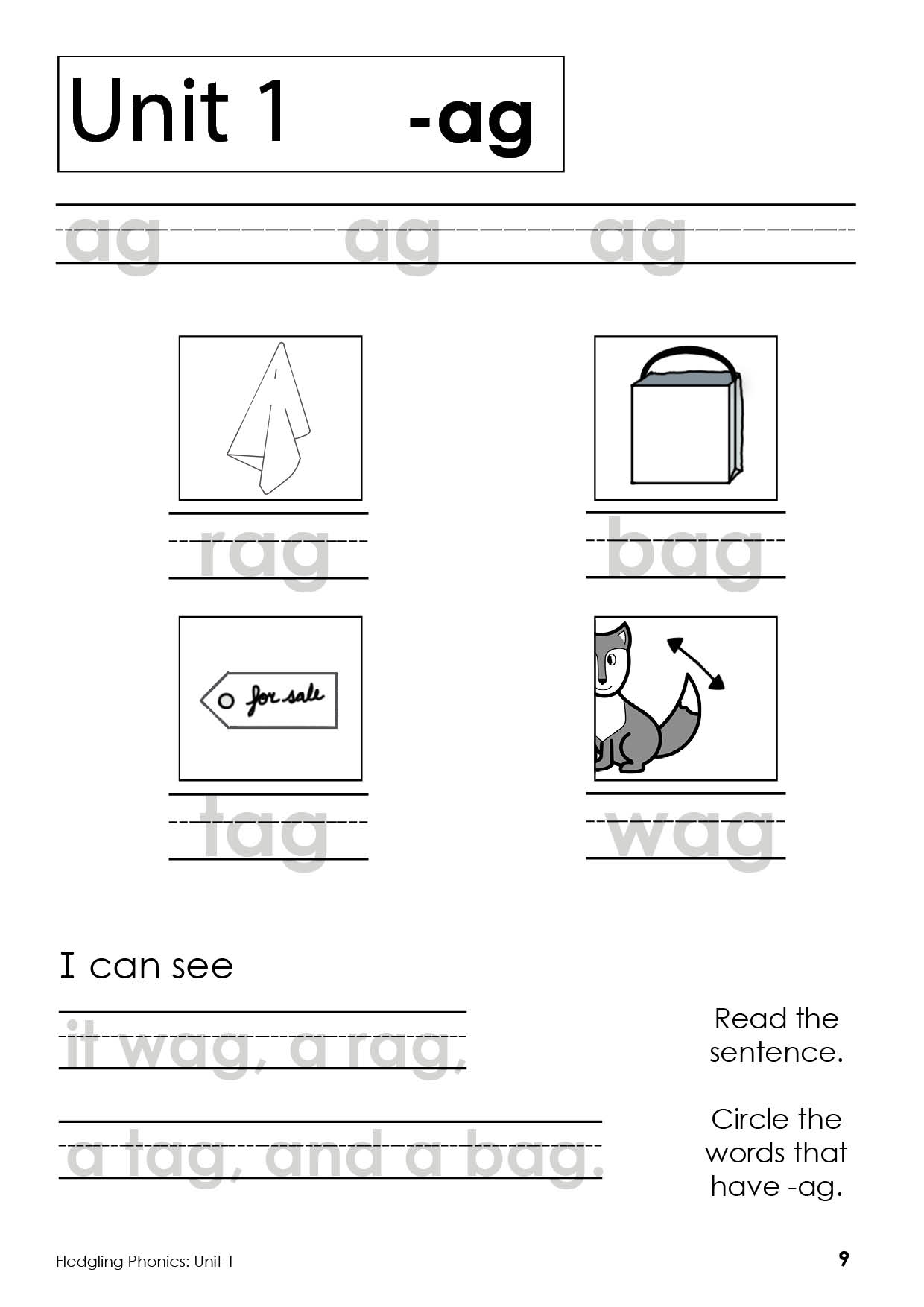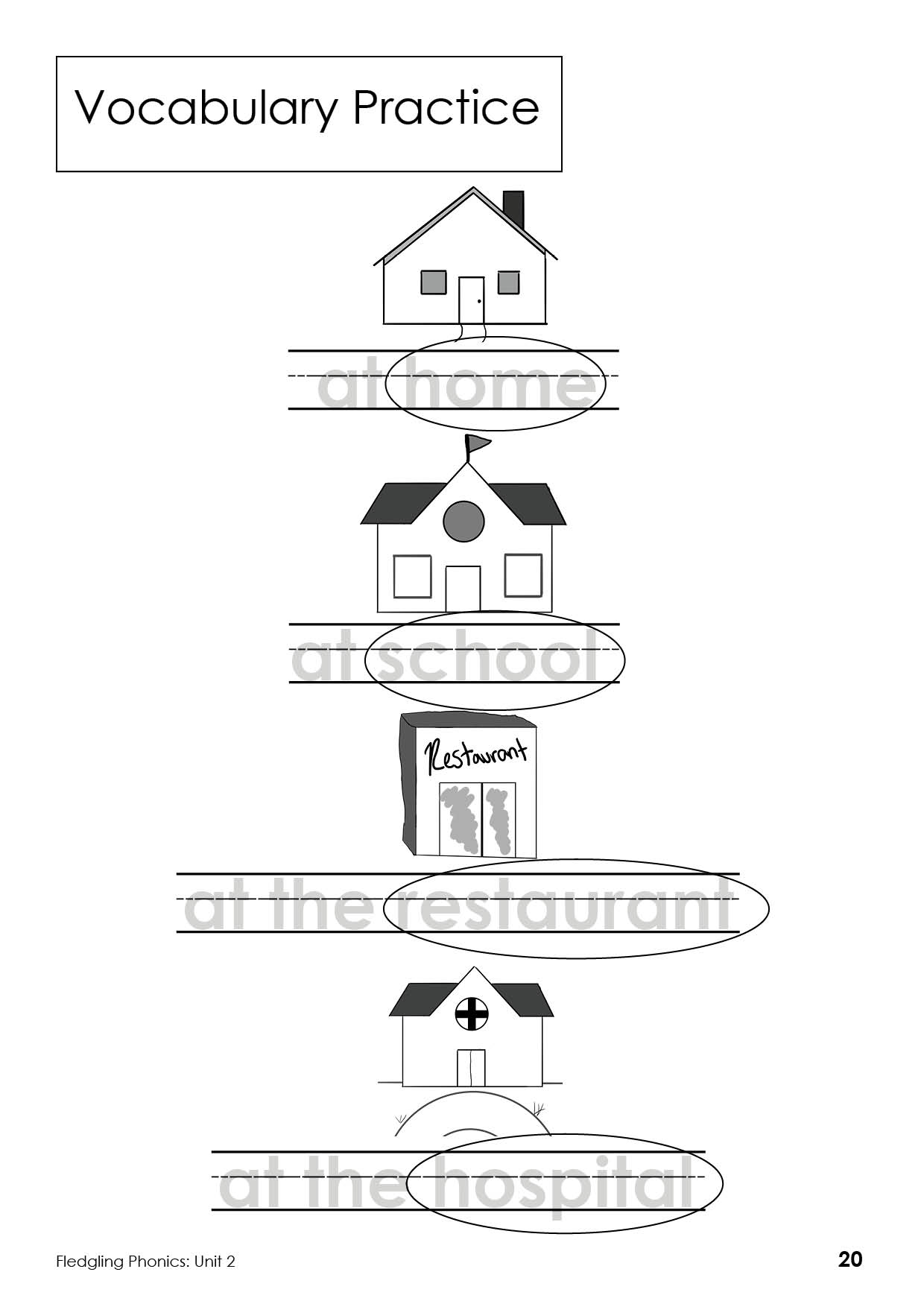 This book was designed to support book 2, Fledgling Phonics: Short Vowels. It includes activities to help develop motor skills, main vocabulary, and review the ideas taught in the main textbook. The workbook also includes unit tests, a picture dictionary, and flashcards.